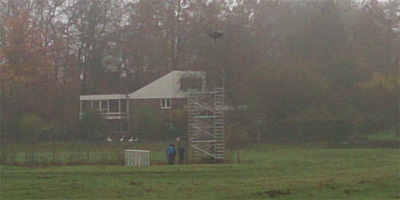 mastDe verlichting op de ijsbaan zelf is gerepareerd. Op de foto ziet u de steiger die gebouwd is om de lamp te repareren in de hoge mast: duizelingwekkend hoog!